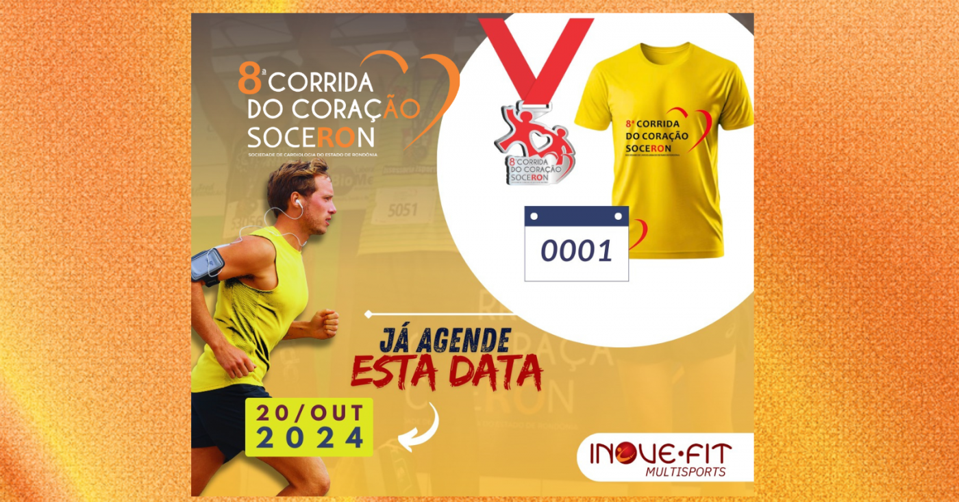 A Sociedade Rondoniense de Cardiologia (SOCERON) promoverá a 8ª CORRIDA DO CORAÇÃO com o objetivo de conscientizar sobre a necessidade da prática de hábitos saudáveis e alertar a população sobre os fatores de risco cardiovasculares.