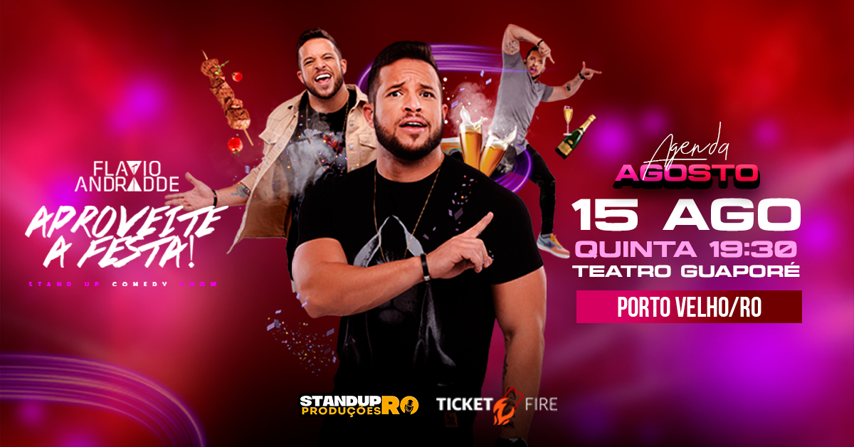 “APROVEITE A FESTA”. Ele está de volta, FLAVIO ANDRADDE Desembarca em Rondônia do dia 15 à 18 de AGOSTO pra uma super turnê de Stand up Comedy.