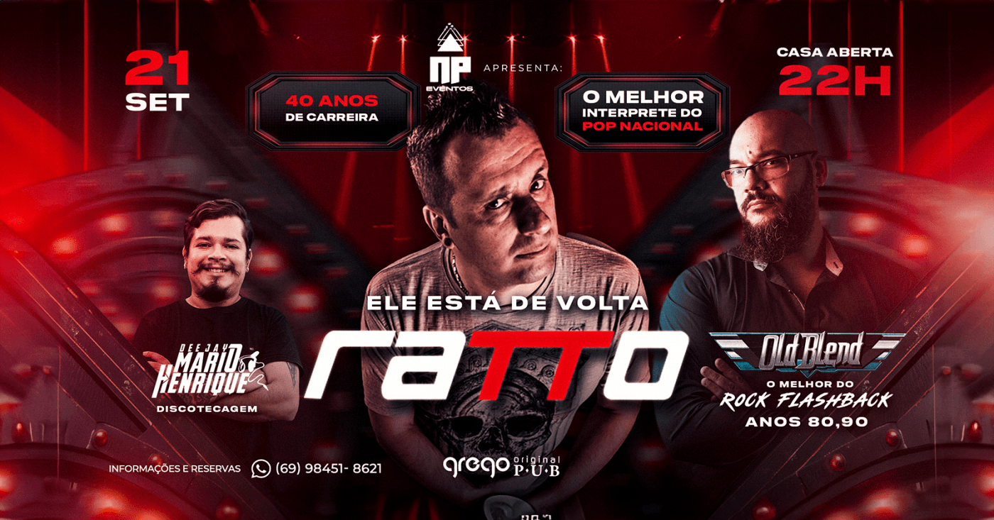 Com seu talento inigualável e carisma contagiante, Ratto promete reviver os maiores sucessos que marcaram época e conquistaram todo o Brasil.